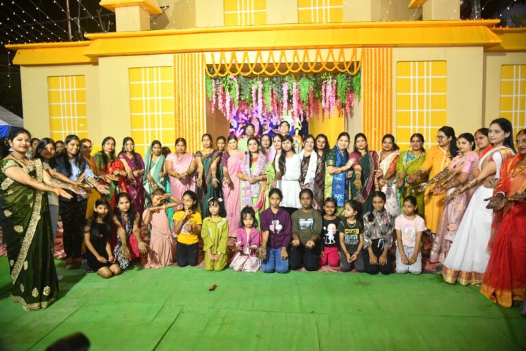 अंबिकापुर / अनोखी सोच संस्था के द्वारा प्रति वर्ष दुर्गा पुजा महोत्सव का भव्य आयोजन मणिपुर दर्रीपारा मोहल्ले में किया जाता है इस वर्ष आयोजन का दसवाँ वर्ष है । संस्था द्वारा आयोजित दुर्गा पुजा महोत्सव में विभिन्न प्रकार के सांस्कृतिक कार्यक्रमों का आयोजन भी किया जाता है इसी क्रम में संस्था द्वारा सोमवार को दुर्गा पूजा पंडाल पर मेहंदी प्रतियोगिता का सफलतापूर्वक आयोजन किया गया। इस प्रतियोगिता का उद्देश्य भारतीय संस्कृति, परंपरा और कला को प्रोत्साहित करना तथा प्रतिभागियों की रचनात्मकता को मंच प्रदान करना था।