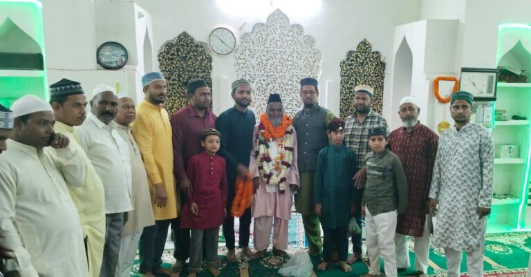 कार्यक्रम के दौरान बड़ी संख्या में लोग मौजूद रहे और इमाम साहब को फूलों की माला पहनाकर मुबारकबाद दी। पूरे मस्जिद परिसर में खुशी और भाईचारे का माहौल देखने को मिला।