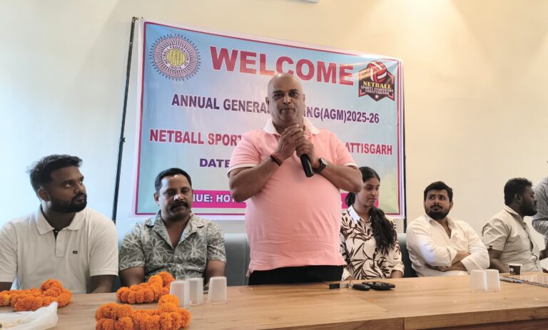 नेटबॉल स्पोर्ट्स एसोसिएशन ऑफ छत्तीसगढ़ की वार्षिक बैठक आज तिल्दा में आयोजित की गई। बैठक की अध्यक्षता राष्ट्रीय कोच राजेश प्रताप सिंह ने की। बैठक में प्रदेश के 19 जिलों के अध्यक्ष व सचिव समेत पदाधिकारीयों ने हिस्सा लिया और एसोसिएशन के कार्यों पर विस्तार से चर्चा की।