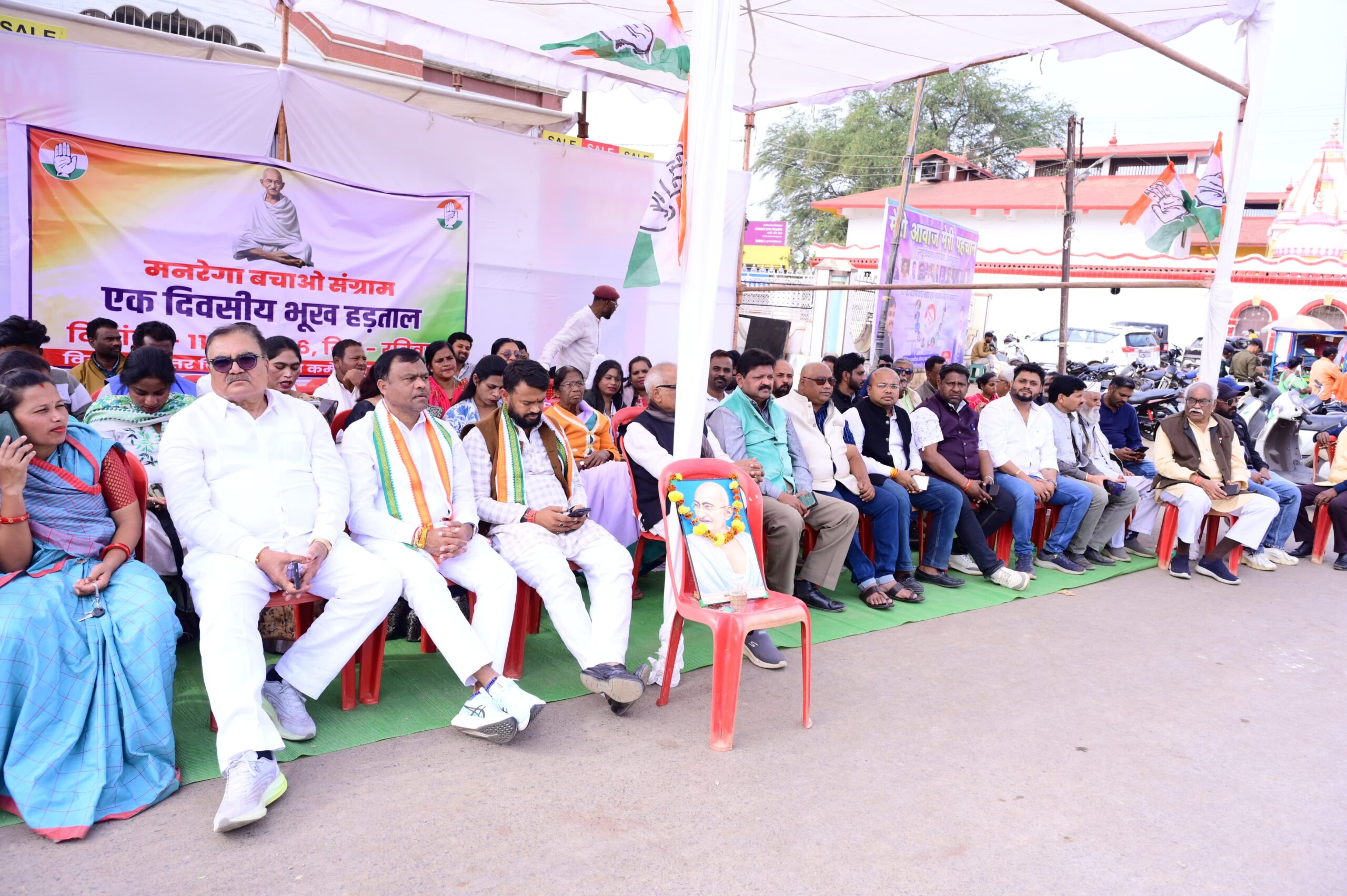 *यह महात्मा गांधी के विज़न को खत्म करने और सबसे गरीब भारतीयों से काम करने का अधिकार छीनने की जान-बूझकर की गई कोशिश है। अब तक, MNREGA संविधान के आर्टिकल 21 के तहत मिले अधिकारों पर आधारित एक गारंटी थी। नए फ्रेमवर्क ने इसे एक कंडीशनल, सेंट्रल कंट्रोल वाली स्कीम में बदल दिया है। बैज ने कहा कि MNREGA गांधीजी के ग्राम स्वराज, काम की इज्ज़त और डिसेंट्रलाइज़्ड डेवलपमेंट के सपने का जीता-जागता उदाहरण है।मनरेगा बचाओ संग्राम के तहत आज समस्त जिला मुख्यालयों सहित बस्तर जिला कांग्रेस कमेटी शहर ग्रामीण के द्वारा भी एक दिवसीय भूख हड़ताल कर प्रतीकात्मक विरोध प्रदर्शन किया गया है…*