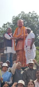 पदयात्रा के दौरान परसा मोड़ के पास भाजपा नेताओं और कार्यकर्ताओं ने धान कटाई कर श्रम की गरिमा और ग्रामीण जीवन के सम्मान का संदेश दिया। इसके बाद संत गहिरा गुरु की प्रतिमा पर माल्यार्पण कर आशीर्वाद लिया गया।