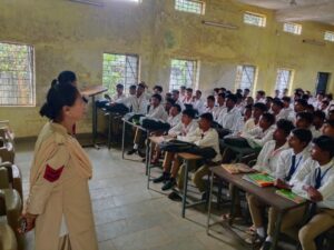 :- बच्चों को साइबर अपराध, ऑनलाइन ठगी, महिला एवं बाल संरक्षण कानून, मानव तस्करी से बचाव, अभिव्यक्ति ऐप की कार्यप्रणाली, हेल्पलाइन नंबरों से कराया गया अवगत।