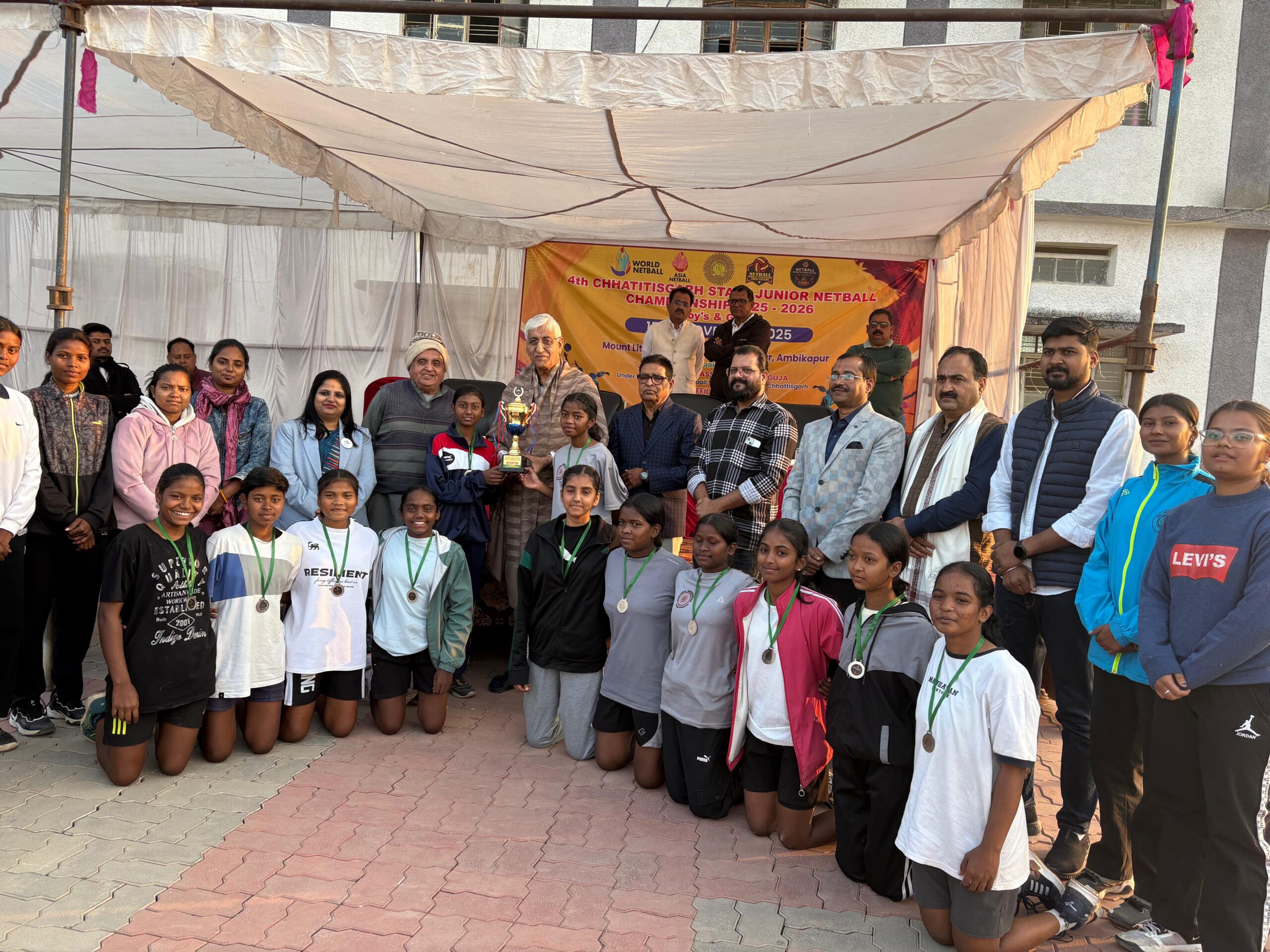 सरगुजा जिले में आयोजित दो दिवसीय चौथी छत्तीसगढ़ राज्य जूनियर नेटबॉल चैंपियनशिप 2025-26 का आयोजन माउंट लिटर ज़ी स्कूल संजय नगर में किया जा रहा था जिसका आज भव्य समापन हुआ। इस प्रतियोगिता में प्रदेश भर से 32 बालक एवं बालिका वर्ग की टीमों सहित लगभग 400 खिलाड़ी, कोच, अधिकारी एवं प्रबंधक सम्मिलित हुए।