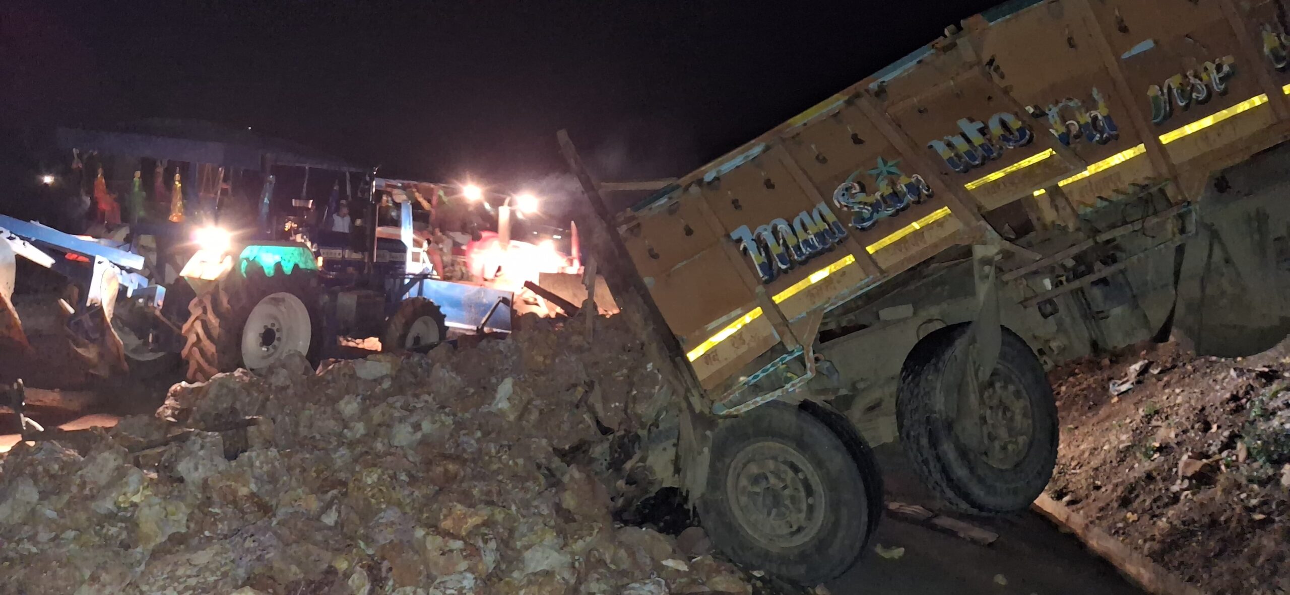 दुर्घटना के बाद ट्रक में लदा बॉक्साइट पत्थर पूरी सड़क पर फैल गया, जिससे मार्ग पूरी तरह बंद हो गया। दोनों ओर वाहनों की लंबी कतार लग गई और यातायात ठप हो गया।