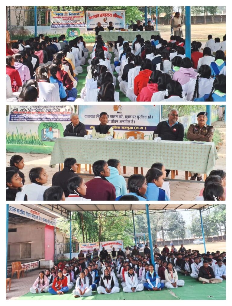 सरगुजा पुलिस एवं सरगुजा जिले के गैर सरकारी संगठनों (एन जी ओ) के संयुक्त तत्वावधान् में वरिष्ठ पुलिस अधीक्षक सरगुजा श्री राजेश अग्रवाल के मार्गदर्शन एवं अतिरिक्त पुलिस अधीक्षक सरगुजा अमोलक सिंह ढिल्लो के नेतृत्व में संचालित नवा बिहान नशामुक्ति जागरूकता अभियान एवं परामर्श केंद्र सरगुजा के द्वारा शासकीय उच्चतर माध्यमिक विद्यालय मेंड्राकला में छात्र -छात्राओं को जागरूक करने के उद्देश्य से नशामुक्ति, यातायात ,व्यक्तित्व विकास एवं कैरियर गाइडेंस विषय पर एक दिवसीय जागरूकता कार्यक्रम मुख्य अतिथि विजय जामनिक कार्यपालन यंत्री जल संसाधन विभाग, विशिष्ट अतिथि वरिष्ठ समाजसेवी अजय तिवारी कर्मयोग राज्य समन्वयक आर्ट ऑफ लिविंग छत्तीसगढ़ एवं विशिष्ट अतिथि अभय तिवारी जी उप निरीक्षक यातायात पुलिस के गरिमामयी आतिथ्य में आयोजित किया गया। मुख्य अतिथि विजय जामनिक ने छात्र -छात्राओं को कैरियर गाइडेंस एवं व्यक्तित्व विकास के संबंध में सम्बोधित करते हुए कहा गया कि अपने लक्ष्य को निर्धारित कर सकारात्मक सोच एवं सही दिशा में पूरी ऊर्जा के साथ हस्तक्षेप करना चाहिए। तभी हमें अभीष्ट लक्ष्य की प्राप्ति होगी। विशिष्ट अतिथि वरिष्ठ समाजसेवी अजय तिवारी जी ने अपने उद्बोधन में नशे की लत ,नशा के विभिन्न प्रकारों एवं नशे की लत लगने के कारणों के विषय पर विस्तृत प्रकाश डाला।साथ ही उनके द्वारा योग एवं ध्यानयोग के महत्व को समझाया गया। छात्र -छात्राओं को नशा नहीं करने एवं दूसरों को भी नशा नहीं करने हेतु प्रेरित करने के लिए शपथ दिलाई गई। विशिष्ट अतिथि अभय तिवारी जी उपनिरीक्षक यातायात पुलिस सरगुजा के द्वारा अपने उद्बोधन में यातायात के प्रावधानों एवं यातायात के नियमों की अवहेलना कर वाहन चलाने पर हो रही सड़क दुघर्टनाओं को आंकड़ों सहित प्रस्तुत किया गया। साथ ही बिना ड्राइविंग लाइसेंस एवं हेलमेट के बिना वाहन नहीं चलाने हेतु समझाईश भी दी गई। कार्यक्रम को सफल बनाने में अध्यापक के के गुप्ता, संजीव वर्मा, हेमंत गुप्ता,एस के शेषाद्रीवासन, राहुल ठाकुर, सुनील पैकरा ,अध्यापिका रत्ना राय, अनिता वर्मा , ममता वर्मा, सुश्मिता मुखर्जी, तृप्ति त्रिपाठी, सरिता दुबे, पिंकी सिन्हा, आशा वर्मा,निरूपा कश्यप,उमा यादव, अनुराधा गुप्ता, ऐश्वर्या मानिकपुरी एवं नवा बिहान नशामुक्ति जागरूकता अभियान एवं परामर्श केंद्र सरगुजा के परामर्शदाता नीरज पाण्डेय एवं रानु पाण्डेय का सराहनीय योगदान रहा।