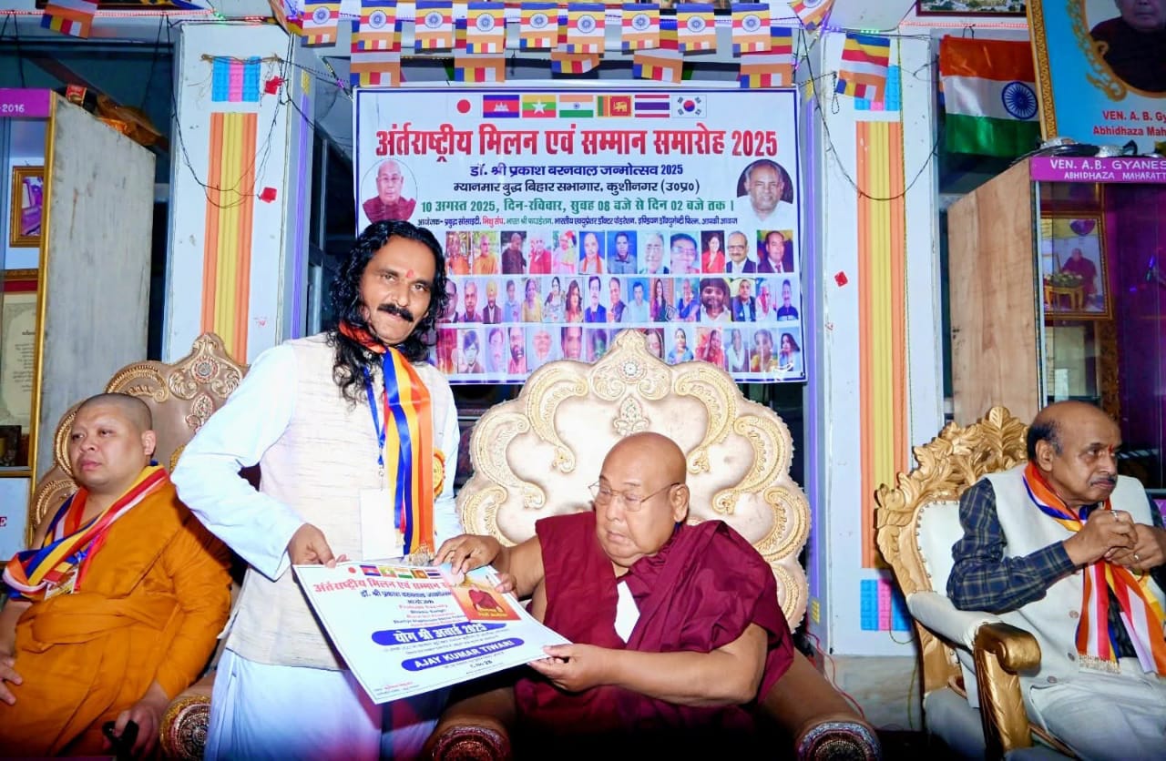 प्रबुद्ध सोसायटी ,भीखू संघ एवं इन्डियन एक्यूप्रेशर एसोसिएशन के संयुक्त तत्वावधान् में आयोजित “अन्तर्राष्ट्रीय मिलन एवं सम्मान समारोह” म्यांमार बुद्ध बिहार कुशीनगर उत्तर प्रदेश में समाज सेवा ,शिक्षा,योग एवं स्वास्थ्य के क्षेत्र से जुड़े चयनित चौबीस समाजसेवियों को मुख्य अतिथि डॉ भदन्त ज्ञानेश्वर के कर कमलों से दिया गया। योग एवं समाज सेवा के क्षेत्र में निरंतर सेवारत वरिष्ठ समाजसेवी अजय तिवारी जी कर्मयोग राज्य समन्वयक आर्ट ऑफ लिविंग छत्तीसगढ़ सह सरगुजा संभाग प्रभारी नवा बिहान नशामुक्ति जागरूकता अभियान एवं परामर्श केंद्र के परामर्शदाता को “अन्तर्राष्ट्रीय योग श्री अवार्ड 2025 ” दिया गया। वरिष्ठ समाजसेवी अजय तिवारी जी छत्तीसगढ़ राज्य से अलंकृत होने वाले एकमात्र वरिष्ठ समाजसेवी हैं। अन्तर्राष्ट्रीय योग श्री अवार्ड से सम्मानित होना छत्तीसगढ़ में अम्बिकापुर निवासी वरिष्ठ समाजसेवी अजय तिवारी को सम्मानित किया जाना छत्तीसगढ़ एवं सरगुजा वासियों के लिए गर्व की बात है। सरगुजा जिले के स्वैच्छिक संगठनों,आध्यात्मिक संगठनों,गैर सरकारी संगठनों, सामाजिक संगठनों एवं नवा बिहान नशामुक्ति जागरूकता अभियान एवं परामर्श केंद्र से जुड़े समाजसेवियों ने वरिष्ठ समाजसेवी अजय तिवारी जी को हार्दिक बधाई एवं शुभकामनाएं दी।